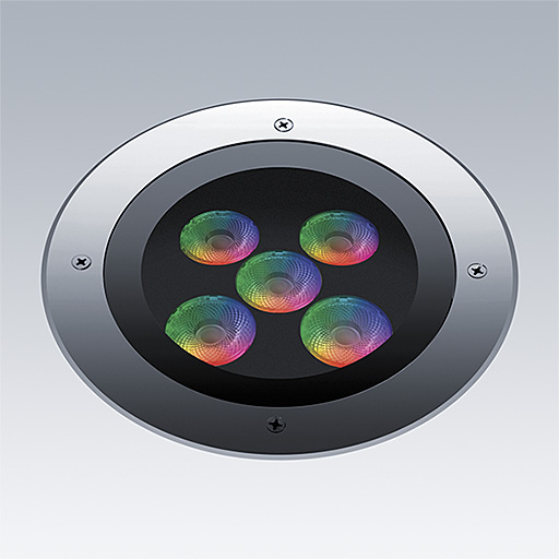 Cesar Opera, walk over montage encastré dans le sol, luminaire à LED pour l'éclairage décoratif des façades, avec et distribution faisceau medium.. Flux fixe Driver. Classe électrique III, IP67, Résistance aux impacts : IK09. Boîtier : Moulage sous pression aluminium, sans peinture. Température de service de Température ambiante : -20°C à +37°C. Livré avec LED rouge, vert, bleu et blanc.