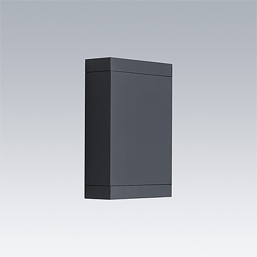 Axyl Glow fixation murale, luminaire architectural à LED pour l'éclairage décoratif des façades, avec 2 échancrures et distribution. Classe électrique III. gradable DALI-2 Déporté Driver. IP65, Résistance aux impacts : IK06. Boîtier : aluminium Moulage sous pression, thermopoudré texturé anthracite. Température de service de Température ambiante : -20°C à +50°C. Livré avec LED 4 000 K.