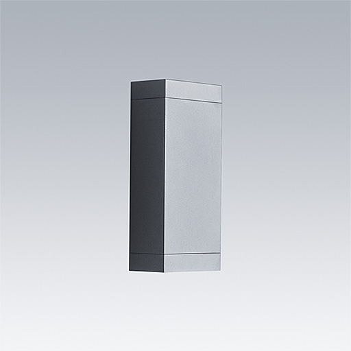 Axyl Glow fixation murale, luminaire architectural à LED pour l'éclairage décoratif des façades, avec 2 échancrures et distribution. Classe électrique II.. Flux fixe Driver. IP65, Résistance aux impacts : IK06. Boîtier : aluminium Moulage sous pression, thermopoudré texturé gris (RAL9006). Température de service de Température ambiante : -20°C à +50°C. Livré avec LED 3 000 K..