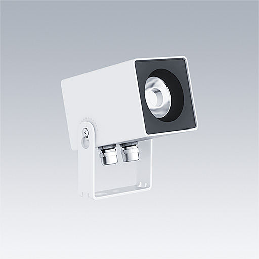 Projecteurs orientables apparents Caelon S pour l'éclairage de façades architecturales, de détails, de niches et de structures. Classe électrique I, IP66 avec. Équipés du convertisseur Sortie fixe. Corps : aluminium Moulage sous pression blanc. Vis en acier inoxydable. Température ambiante : -20°C à +25°C. Livré avec LED 4 000 K.