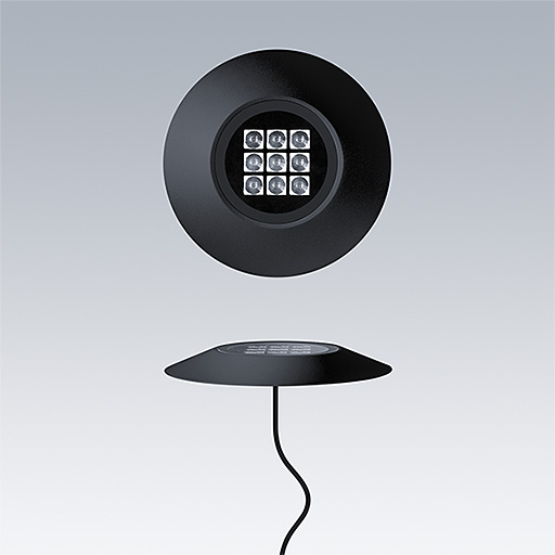 Cesar Bow plafonnier, luminaire à LED pour l'éclairage décoratif des façades, avec et distribution faisceau medium. Classe électrique III. Convertisseur à distance DALI2. IP67, Résistance aux impacts : IK09. Boîtier : aluminium Moulage sous pression, thermopoudré texturé noir. Température de service de Température ambiante : -20°C à +40°C. Livré avec LED 4 000 K.
