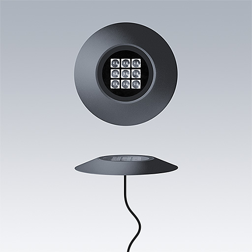 Cesar Bow plafonnier, luminaire à LED pour l'éclairage décoratif des façades, avec et distribution faisceau medium. Classe électrique III. Convertisseur à distance DALI2. IP67, Résistance aux impacts : IK09. Boîtier : aluminium Moulage sous pression, thermopoudré texturé anthracite. Température de service de Température ambiante : -20°C à +40°C. Livré avec LED 3 000 K.