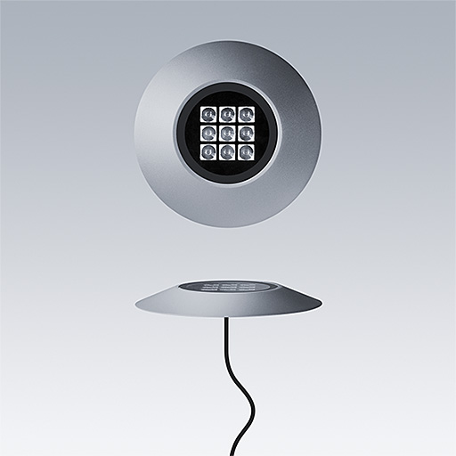 Cesar Bow plafonnier, luminaire à LED pour l'éclairage décoratif des façades, avec et distribution faisceau large. Classe électrique III. Convertisseur à distance DALI2. IP67, Résistance aux impacts : IK09. Boîtier : aluminium Moulage sous pression, thermopoudré texturé gris. Température de service de Température ambiante : -20°C à +40°C. Livré avec LED 2 700 K.