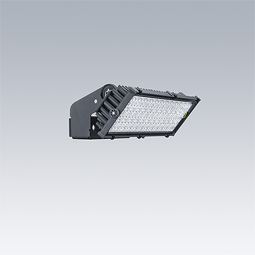Projecteur LED haute puissance avec distribution lumineuse Optique 1 : asymétrique 60°; de 144 LED. Appareillage externe, Fourni uniquement par Thorn Lighting, à commander séparément (courant de transmission maximum 1050 mA) et câblage via câble de type H07 RN-F et mini-diamètre de 13 mm. Classe électrique I, IP66, IK08. Dissipateur thermique : Moulage sous pression aluminium thermopoudré gris foncé (similaire à RAL 7043). Support de fixation et cadre : gris foncé (similaire à RAL 7043). Fermeture : 4 mm transparent verre. Fourche montée à l’aide des points de fixation disponibles (une vis M20 et deux vis M14). Fonctionnement à faibles papillotements (< 1 %) adapté à une diffusion TV haute définition. Livré avec LED 4 000 K
