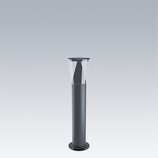 Borne respectueuse de l’environnement avec émission lumineuse limitée vers le haut, 8 LED alimentées en 500mA et une distribution lumineuse Confort symétrique radial. Flux fixe Driver. Classe électrique I, IP66, IK10. Base : aluminium Moulage sous pression (EN AC-44300). Finition : aluminium thermopoudré, gris anthracite 900 sablé texturé. Diffuseur : Polycarbonate (PC) transparent anti-UV. Monté sur bride. Livré avec LED 3 000 K.
