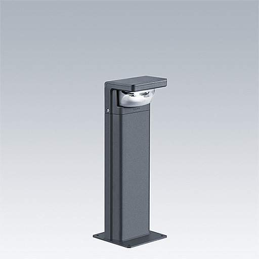 Borne LED sur semelle de 700 mm de haut, incorporant la technologie Flat beam® de Thorn. 1 LED alimentée en 350mA. intégré Driver inclus. Classe électrique I, IP66, IK10. Corps : Moulage sous pression aluminium (EN44300, compatible avec l'installation en bord de mer), thermopoudré, texturé gris anthracite 900 sablé. Vasque : traitement anti-UV Polycarbonate (PC), semi-dépoli. Fixations : Acier inox. Livré avec LED 3 000 K.