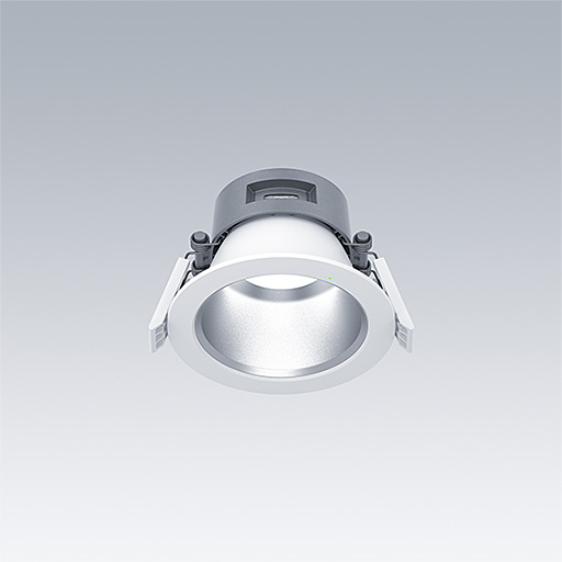 Downlight à LED très efficace et durable avec faible hauteur. Idéal pour le montage dans les plafonds d’une épaisseur de 1 à 40 mm et dans une découpe d’un diamètre de 100 mm avec des clips de fixation à ressort. Convertisseur LED Flux fixe avec télécommande, à enficher, Configuration NFC circuit d’éclairage de secours, test manuel, 3 heures. Corps : Moulage sous pression aluminium pour une gestion thermique très efficace avec un taux de recyclage > 90%. Diffuseur : Polycarbonate (PC). Réflecteur et garniture : réflecteur lisse Polycarbonate (PC) finition satinée avec faisceau large. Classe électrique II, IP54_IP20. Livré avec LED 4 000 K