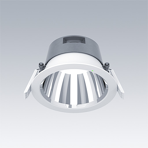 Downlight à LED très efficace et durable avec faible hauteur. Idéal pour le montage dans les plafonds d’une épaisseur de 1 à 40 mm et dans une découpe d’un diamètre de 150 mm avec des clips de fixation à ressort. Convertisseur LED gradable DALI-2 avec télécommande, à enficher, Configuration NFC, compatible SwitchDIM avec fonction d’éclairage de sécurité de 3 heures et autotest / test adressable DALI. Corps : Moulage sous pression aluminium pour une gestion thermique très efficace avec un taux de recyclage > 90%. Diffuseur : Polycarbonate (PC). Réflecteur et garniture : réflecteur lisse Polycarbonate (PC) avec une finition brillante pour un meilleure contrôle des éblouissements dans les applications de bureau. Classe électrique II, IP54_IP20. Livré avec LED 4 000 K