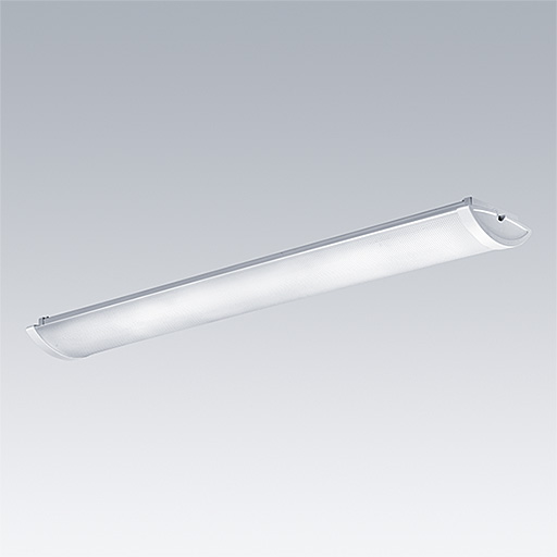 Luminaire LED Monté en plafonnier de faible profondeur. Électronique, Appareillage gradable DALI. Classe électrique I, IP44. Corps : acier pré-peint. Embouts : Matière plastique blanc. Diffuseur : acrylique dépoli. Positions de fixation en trou de serrure de Ø 14 mm pour une fixation directe au plafond, au mur ou aux supports. Intervalles de fixation : 1100 mm. Deux entrées de câble Ø 19 mm à l’arrière du corps et opercules dans les embouts. Passe-fil inclus. Connexion électrique via bornier à poussoir 2 x 2,5 mm² 5 P. Câblage traversant. Livré avec LED 4 000 K