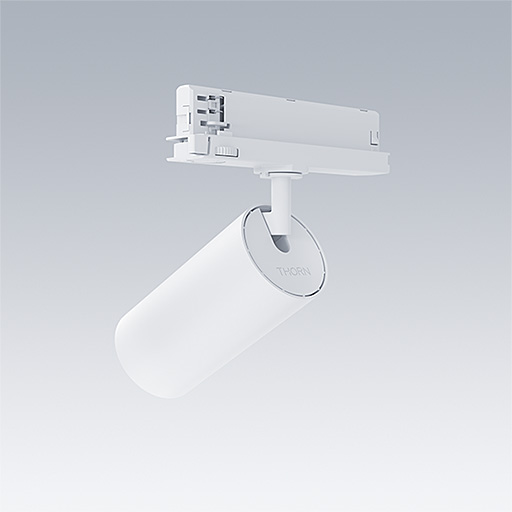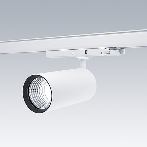 Projecteur LED pour installation sur rail triphasé avec distribution lumineuse de type projection et température de couleur stabilisée. Electronique, non gradable. Classe électrique II, IP20. Corps : aluminium Moulage sous pression, peinture microtexturée blanc. Réflecteur : PC poudré. Projecteur orientable sur le plan horizontal de 360° et inclinable sur le plan vertical de 90°. Livré avec LED 4 000 K