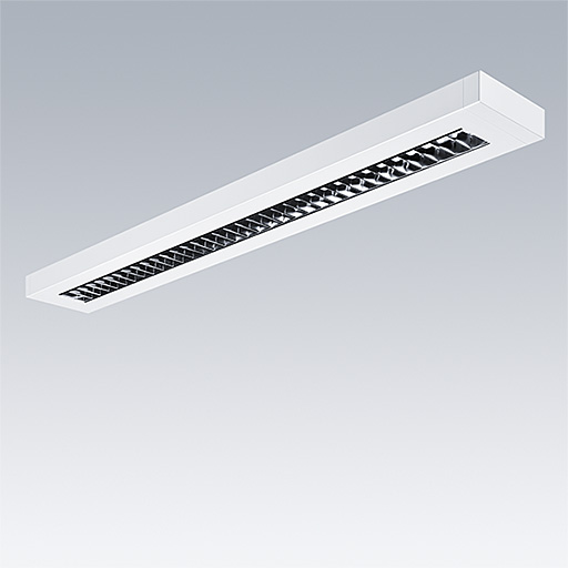 En smal, utenpåliggende armatur med direkte fordeling. DALI-dimming Elektronisk. Armaturhus: stålplate, pulverlakkert hvit (nær RAL9016). Endestykker: stålplate pulverlakkert hvit (nær RAL9016). Reflektorraster: blank aluminium. Elektrisk isolasjonsklasse I, IP20, Slagfasthet: IK03. Elektrisk tilkobling via koblingsklemme. Med 4000K LED.