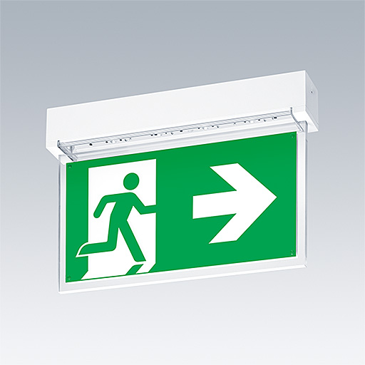 Slank IP65 LED-nødlysarmatur for montering på vegg, tak eller overflate. Klikkeadapter for overflatemontering på vegg medfølger. Mulighet for innfelt montering med valgfri monteringsramme. Armatur for sentral nødlysforsyning, med kretsovervåking, uten enkeltovervåking av armaturen...... Ytterligere klikkoptikk optimert for rømningsveier og åpne områder fra høyere monteringshøyder. Piktogram som klikker på plass og som er synlige på opptil 23 m og 30 m, er tilgjengelige for konvertering til nødutgangsarmatur. Armaturhus lagd av hvit polykarbonat. Deksel lagd av transparent polykarbonat. Verktøyfri klikkemontering etter montering av armaturhusets sokkel. Hurtigmonterte koblingsklemmer, mulig med gjennomgangskobling opptil 2,5 mm². Ingen vedlikehold, takket være LED-teknologi. Levetid på 50 000 t ved konstant lysmengde. Strømforsyning: 220/240 V AC. Luminaire input power: 5,6 W. Beskyttelsesgrad: IP65. Beskyttelsesklasse: SC2. Slagfasthet: {IK03}. Mål: 336 x 54 x 59 mm. Vekt: 0,6 kg